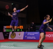 Thailand had a less than thrilling start to the day. In mixed doubles, Japan Open champions Songphon Anugritayawon / Kunchala Voravichitchaikul could not handle Chen Hung Ling / Chou Chia Chi, and allowed the Chinese Taipei pair to advance to the Malaysia Open quarter-finals for the second straight year. Sudket Prapakamol / Saralee Thoungthongkam struggled in their first game against Hashimoto/Fujii of Japan but managed to hold on 22-20 before dominating the second game.