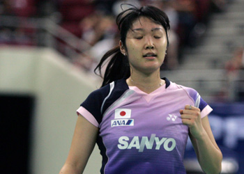 Known as the young lady who keeps smiling regardless of any circumstances, 24-year-old Eriko Hirose (pictured) was the first lady to play solo on the courts of the quarter-finals. By taking the first game 21-19 against hot favourite Wang Lin, she gave the second seed a good jumpstart that caused the latter to awaken in the second game, taking it back in 21-15. Wang had a good lead through the whole of game three, before the Japanese caught up with her in the end, throwing her a defeat by merely two points.