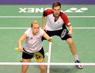 In today’s semi final the Danes were once again relentless in their pursuit of gold. There victims this time were Germany, who many fancied as outside contenders for a final spot. Peter Gade (pictured bottom) entered the fray at semi-final stage and immediately settled into his rhythm as his fresh legs were just too hot for Marc Zwiebler and the top Dane won 21-6, 21-13. After the initial win by ‘the king’, the crown princes Boe and Mogensen, also fresh off the plane, took to the stage and kicked off the cobwebs with a 21-17, 21-18 win over Fuchs and Kindervarter. Denmark wrapped up the win as a slightly spluttering Jan O Jorgensen eventually found his game face halfway into the first set to come back from 16-7 down to send his team to the final with a 24-22, 21-17 win.