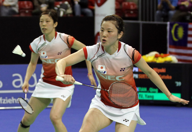 Japan’s Satoko Suetsuna / Miyuki Maeda, just as they had in the Beijing Olympics, removed the top seed early but this time they did not fall to the top Korean pair in the semi-finals. They edged out Ha/Lee 13-21, 21-19, 22-20 to reach the final but are still in search of a Super Series title.