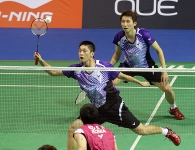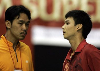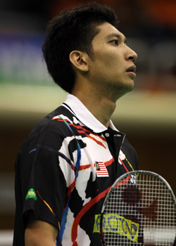 Perhaps the match of the day was All England finalist Kenichi Tago against the out-of-favour Malaysian Kuan Beng Hong (photo). Beng Hong, runner-up at this event in 2005 and once the No.3 in his country, has been adrift for a while, but on Wednesday he displayed tremendous fighting ability against an opponent who was expected to smother him. Tago was left chasing shadows in the first game as Kuan demonstrated great all-court ability and had Tago on the defensive. The Japanese slowly asserted himself in the second. The third could have gone either way, but Tago was steadier under pressure. Until midway in the third game, things were level, but Kuan made a couple of errors and that was all it took for Tago to pull through.