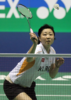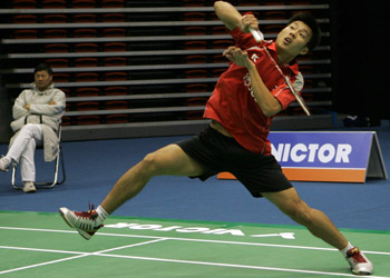 Boonsak Ponsana (photo) briefly troubled three-time World Champion Lin Dan in the other semi-final, and even had first game point. That was about as far as he got, for once the great Chinese had warmed up, he brushed past his Thai challenger. After taking the first game he toyed with Ponsana, staying in the mid court and making him run around.