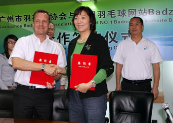 Mrs. Guan Weizhen (photo), President of the Guangzhou Badminton Association and Raphael Sachetat (photo), chief editor of Badzine International and founder of the website channels, signed an agreement today in Guangzhou in front of local media representatives to seal a new partnership for the future launch of a Badzine Channel in China.