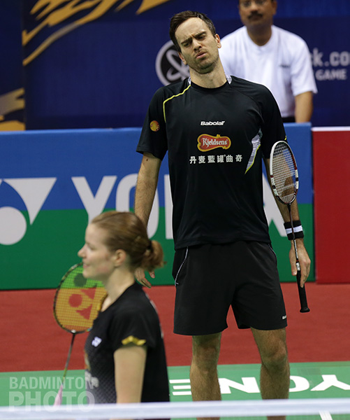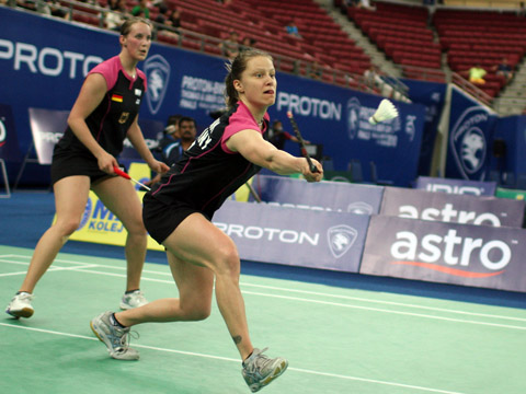 On court four, Japan’s leading women’s singles player, world #13 Eriko Hirose toppled the glass a little as she saw Juliane Schenk of Germany (ranked 11th) stealing the first point in straight games of 21-15, 21-12. Fortunately, doubles pair of Mizuki Fujii / Reika Kakiiwa grasp the momentum and held off the German pair of Carla Nelte and Johanna Goliszewski.