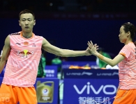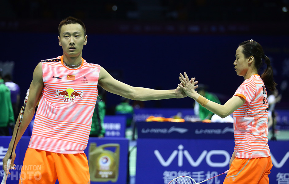 China, who sent Chen Long instead of Bao Chunlai to play 3rd singles and Chai Biao / Zhang Nan (pictured left) in place of Cai Yun/ Fu Haifeng, had a smooth 5-0 win over Peru, who had players splitting themselves to play in both singles and doubles matches.