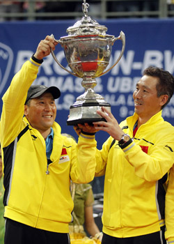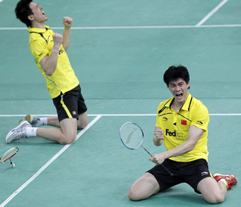 The Chinese defeat in the Uber Cup final yesterday seemed to have taught the Chinese men several valuable lessons. While China’s women’s doubles Olympic champion pair of Du Jing / Yu Yang lost the tie for China, the men’s doubles Olympic silver medallists won a vital point for the Thomas team. As it is, both reigning Olympic champion pairs crumbled at the 2010 Thomas and Uber Cup Finals.