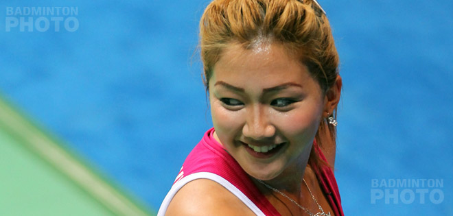 The longest match of the day was Zhu Lin’s 72-minute marathon win over Germany’s Juliane Schenk, who became the first player on the week to take a game from the 2007 World Champion. For Zhu Lin (pictured below), it was a welcome return from her international hiatus as she took her first title since her Asian Championship last spring in Korea. Nor was a Grand Prix title in an out-of-the-way place like Canada in any way easy pickings for the Chinese veteran as she still had to elbow her way past two top-ten players and the world’s #20 player to make it to the top in Richmond.