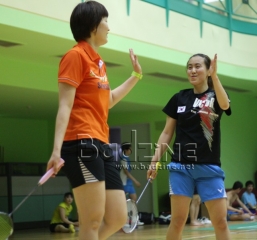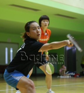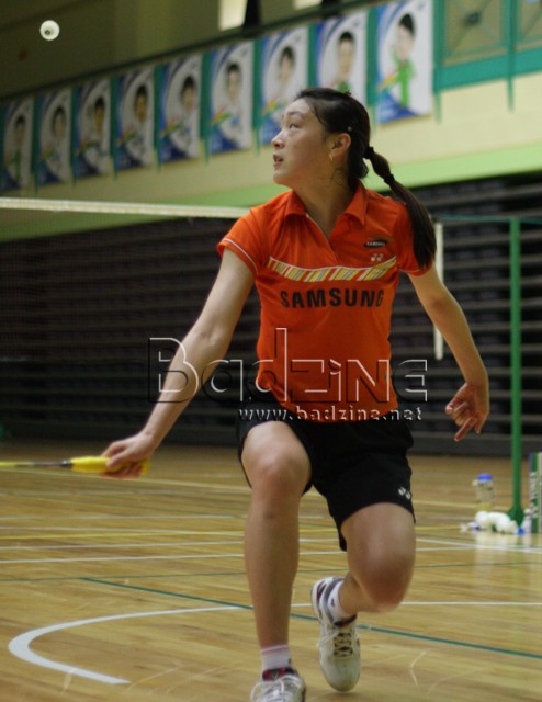 Two players who are looking forward to the Australia Open are former singles headliners Seo Yoon Hee and Hwang Hye Youn. Hwang (pictured) is a two-time national champion who has won bronze in the Asian Games and the All England but she injured her foot last October and was finally dropped from the national team in early February when it turned out that her recovery would involve her leg going back into a cast for another month. Hwang has not competed internationally or nationally yet this year but in training, she showed no mobility problems whatsoever as she floated around the court, chasing down backhand after backhand and schooling veteran Park Tae Sang with her precision placement.