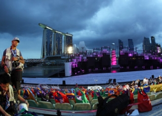 The moment many Singaporeans and visitors had been waiting for – to see the biggest show Singapore has ever staged – became a reality Saturday night at 8:10PM. This two-hour long opening ceremony to kick off this inaugural YOG was not only lively and vibrant, featuring light and laser, but also had many fire and water effects in the show. And for the first time in Olympics opening ceremonies, athletes were invited to sit together with the spectators to enjoy the show.