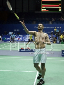 Denmark will have a representative in the quarter-final, however, as Christian Lind Thomsen (pictured) took the opportunity of Lee Chong Wei’s withdrawal to book his ticket for the week end by beating Korea’s Lee Cheol Ho after 1hour and 7 minutes of play. The Dane was so happy that he threw his shirt in the crowd after his victory.