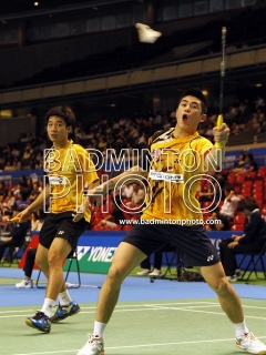 To Make Malaysia’s day even brighter – on top of the easy round of Koo and Tan – Chan Peng Soon and Lim Khim Wah (photo) did even better by beating one of the pairs favoured for the title – Denmark’s Boe and Mogensen, seeded third. The Malaysians were all fired up and once they got even in the second game, they seemed to find the extra energy to take it home 18-21, 21-19, 21-10.