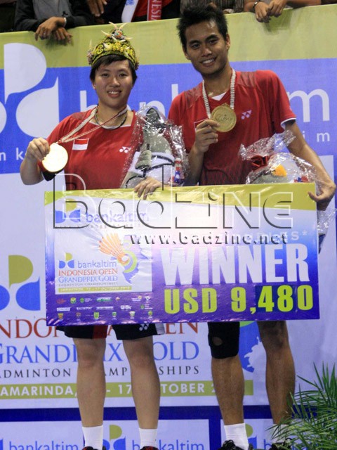 The shortest match was the mixed doubles, where Indonesia’s Tontowi Ahmad/Liliyana Natsir (photo) became the champions after beating their compatriots Markis Kido and Lita Nurlita 21-11, 21-13, in just 19 minutes. It was Ahmad/Natsir’s second title in three tournaments (and three finals) as a pair and gives them a boost going into the Asian Games as Indonesia’s premier pair.