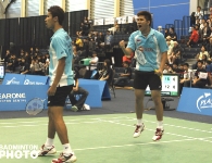 Another great match came from women’s doubles, where Luo Ying/Luo Yu (China) faced number one seed, Meiliana Jauhari/Greysia Polii (Indonesia). The Indonesian pair looked so strong in the first game and beginning of the second, while the Chinese made a shaky start. Meiliana and Greysia took the first game easily 21-11. They continued to dominate when they led 11-5 in the second and it seemed that they would win the title. However, like the other Chinese ladies pairs, Luo/Luo showed their mental strength and slowly crawled back to tie at 12-12. The Chinese became more consistent and powerful. They kept on attacking Meiliana/Greysia. The more experienced Indonesians fell down several times when they tried to return attacking shots from the teenaged twins, but the Chinese finally won the second game 21-18.
