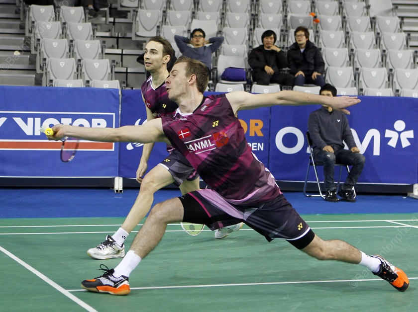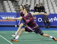 Awaiting them in the final will be top seeds and Denmark Open champions Matthias Boe & Carsten Mogensen, who also needed three games to beat their compatriots Jonas Rasmussen & Mads Conrad-Petersen 21-23, 21-6, 21-16.