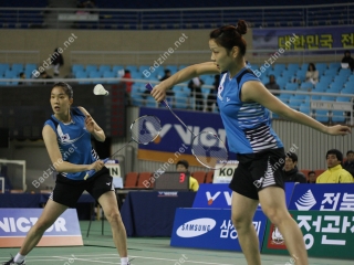 Yoo Hyun Young and Jung Kyung Eun (pictured top) have a pattern with Korea’s late season events. In 2007, the first year of the Korea International Challenge, they ousted Macau’s Zhang Dan / Zhang Zhibo in the semi-finals, then after a one-year hiatus, they came back last year and beat top-seeded Thai pair in the semis and now this year, even with the change in the tournament’s status, they’ve done the heavy lifting again and taken care of China Masters runners-up Bao Yixin / Lu Lu of China. All three times, including this weekend, they have faced another Korean pair in the final.