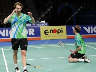 Denmark’s Mathias Boe pointed out, after the first men’s doubles semi-final, that he and Carsten Mogensen ‘have played a lot of crazy matches’ with Cai Yun and Fu Haifeng of China. Saturday in Taipei was no exception as the Danish pair hung on to snatch the 21-10, 18-21, 21-19 victory and gain entry to the final at the Victor BWF Super Series Finals.