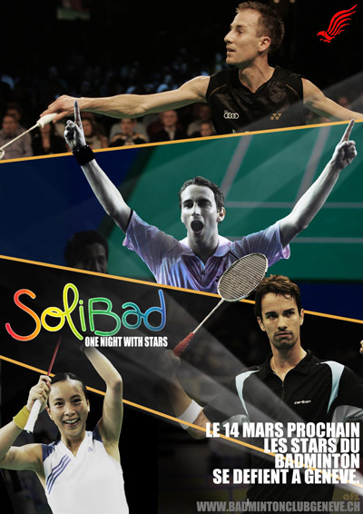 The Badminton Club of Geneva will host the world’s first “Badminton Concert” with top badminton stars and musicians on March 14th with all benefits going to the charity foundation Solibad – Badminton without Borders.