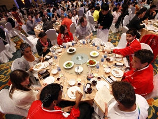 This came as one of the last surprises of the welcoming dinner held in the Shangri-La Hotel, downtown Qingdao, the capital of Chinese beer and former host of the Sailing Competition of the Beijing Olympic Games. References to yachting and sailing were made all evening, together with images of previous wins by the local team. The Chinese players – dressed in elegant red suits for those competing and matching yellow track suits for those who will be watching from the bench – looked as sharp as ever.