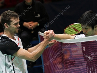 If Vittinghus had brought good news to Denmark, Jan O Jorgensen (photo) was to make a quick exit from the tournament on the same court, right after his compatriot had played. Jorgensen was facing Sho Sasaki from Japan for one of the most appealing matches of the day between two in-form shuttlers and although things were pretty even in both games, each time, the Japanese player was more solid and precise towards the end of the game.