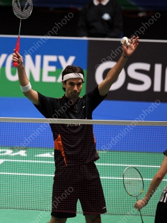 In the men’s singles event, Lin Dan and Lee Chong Wei beat their opponents in different styles, but both made it to the second round. Taufik had to dig deep to beat Kevin Cordon (photo), the hero of last year’s World Championships, for a final 25-23, 21-17 win. Peter Gade had to wait until 1 am to play his match against Rajiv Ouseph of England, in a never-ending day with more than 16 hours of badminton in one day…