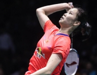 Taipei’s Cheng Shao Chieh (pictured) tried everything she could to pacify the newly-crowned All England champ but the very sharp and confident Li Xuerui was far too aggressive, executing 14 smash winners against only 4 by the funky Taipei shuttler. Cheng Shao Chieh failed to recover from the lopsided 7-21 1st game, also giving away the 2nd game 12-21.