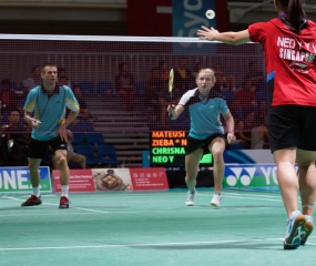 Repeatedly, Mateusiak served short and returned a sitting duck that Zieba finished off. The mixed doubles rallies lasted longer in the second game and the score was closer but the Poles smartly managed to baffle the Singaporeans and separate them into a side-by-side formation before punishing the one who was standing too deep. That one was over 21-9, 21-15, in 29 minutes.