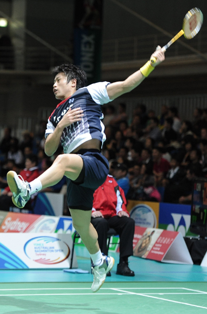 Defending champion Sho Sasaki (pictured) of Japan was tested for the first time this week when Hong Kong’s Hu Yun grabbed the first game. Sho’s solid, bassy smash, which had been employed relatively sparingly against earlier opponents, assumed a primary function in Thursday’s second game where he thundered down nine winners to Hu’s two.