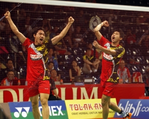 Lesser known Indonesian men’s doubles pairs spelled trouble for a second consecutive day with Korea’s second pair Ko Sung Hyun / Yoo Yeon Seong being the latest casualties to Rendra Wijaya / Rian Sukmawan (pictured) 22-20, 21-18. Korea’s top pair also lost their first game to locals.