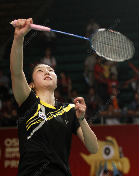 Despite having earned the label as a world-beater, Korea’s Sung Ji Hyun (pictured below) is not quite a great player yet. She has not yet developed the knack of learning quickly enough during a match to turn things around, but she does learn from her mistakes after her matches and was able to defeat a top Chinese player Jiang Yanjiao in three games 18-21, 21-11, 21-18 as they have met three times previously.