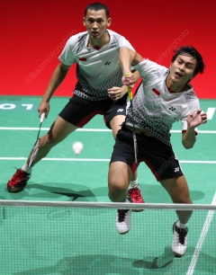 Before Monday evening, Mohammed Ahsan / Bona Septano of Indonesia may have been winless against fourth-seeded Ko Sung Hyun Yoo Yeon Seong but this upset has certainly been in the making for some time. After 3 straight-game losses to the Koreans, the two 23-year-old Indonesians have rallied this year and had 3 match points in their loss in February and were again 3 points away from beating Ko/Yoo last month in Singapore.