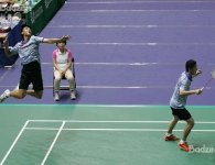 Defending champion Lin Dan took the first game convincingly before Sho evened things up with a 21-16 win. Lin was too good, in the end, though and emerged with the third game to send the 30-year-old Sho packing after an hour and ten minutes of play.