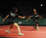 Sapsiree Taerattanachai failed in her attempt to reach two semis, though. Unlike her women’s doubles opponent Bao Yixin, she came into the match with one final four spot in hand but she and Savitree Amitrapai (pictured right) lost a hard-fought match to Singapore Open champions Bao and Zhong Qianxin after 69 minutes.