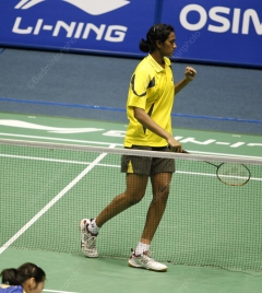 Reigning Asian Junior Champion P.V. Sindhu (pictured above) was not likely thinking of Li Xuerui as her 2008 predecessor to that title, though, as the two lanky women clashed for a spot in the semis. After all, it was the reigning All England and Olympic gold medallist who strode out to meet her on the TV court this afternoon.