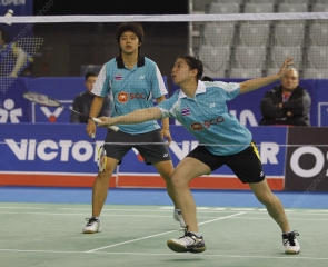 Savitree reached her first final with partner Nipitphon as they pulled the first upset of the day over the third seeds, Danny Bawa Chrisnanta / Vanessa Neo, beating the Singaporeans 21-18, 21-18. The Thais led most of the first game, although the gap between them was never more than three points. A point down to the Singaporeans at 18-17, Savitree and Nipitphon won four consecutive points to wrap up the game. It was much the same in the second game although Chrisnanta and Neo used more offensive smashes. The Thais slowed down after leading 11-8 at the mid game to again trail 18-17 only to step up again and finish the match in a similar fashion.