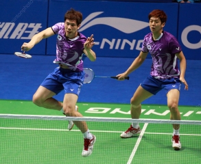 Having only played in Japan and Korea in 2012, the 84th ranked pair pulled off an upset to beat the first seeds Yonathan Suryatama Dasuki / Hendra Aprida Gunawan, 21-12, 21-12. The Indonesians failed to produce any resistance, as the Koreans advanced to the final to face their compatriots Ko Sung Hyun / Lee Yong Dae (pictured below). Ko/Lee maintain their great form reaching a fifth final in just seven tournaments played, overcoming more Indonesian opposition in a simple match, the French Open champions beating Fernaldi/Putra 21-10, 21-8.