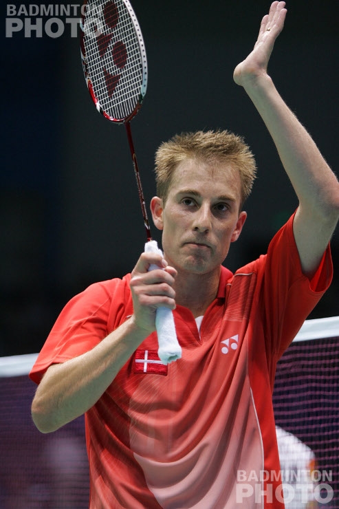 Thailand’s Tanongsak Saensomboonsuk (pictured below) had a much rockier road to the semi-finals. Chinese Taipei’s Shih Kuei Chun, who had beaten Tanongsak’s compatriot Boonsak Ponsana en route to the Thailand Open quarter-finals earlier this year, held match point in the second game today before the 22-year-old Thai found the spirit to snag four straight points to even the match at one game apiece.