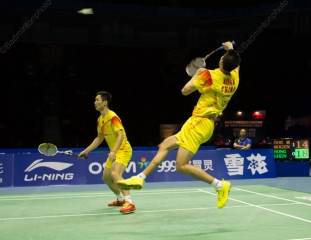 In the other men’s doubles semi-final, Cai Yun / Fu Haifeng failed to make it a repeat of the London Olympic final when they retired midway through the first game due to a lower back injury to Cai.