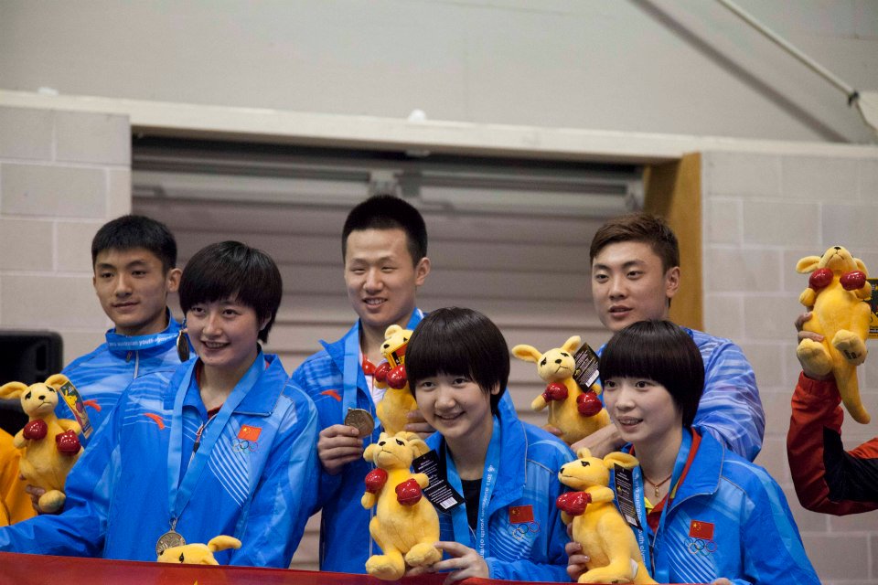 Again, the same two nations contested each other on finals day of badminton in the individual competition at the Australian Youth Olympic Festival as they had in the team event. China featured across the board but didn’t win all, as Australian tennis legend turned politican John Alexander watched on.