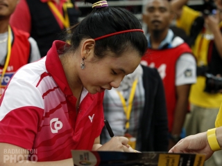 Tai, who claims to be an admirer of Peter Gade, flashed a wide grin post-match, saying, “I’m happy, but it seems Yao Xue wasn’t in her best form.” When asked how it feels to have received the prize money, she paused for a moment before replying, “Actually, I don’t know how much it is. I forgot to look!” She grinned, and was told that the price money was US$30,000, to which the 18-year-old hesitated and said, “Is that a lot? I don’t know either,” causing a burst of laughter in the hall.