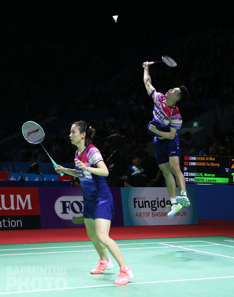 The only real suspense their surrounded the ability of Misaki Matsutomo / Ayaka Takahashi to dispose of their elders Reika Kakiiwa / Miyuki Maeda, which they did in two games, but the struggle went on for exactly one hour. Kakiiwa and Maeda had both been ranked ahead of their compatriots when they were in their former partnerships, but were passed when they split up and were paired together at the beginning of this year.