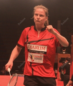 The more surprising result came when PB Jaya Raya, down 0-1 to Djarum, bounced back to win the tie 3-1. PB Djarum had been relying on their singles all week and Juliane Schenk (pictured below) did make quick work of Jaya Raya’s only top 10 singles shuttler, Minatsu Mitani. However, 18-year-old Tai Tzu Ying was just not up to the challenge on Thursday against 16-year-old Busanan Ongbamrungphan.
