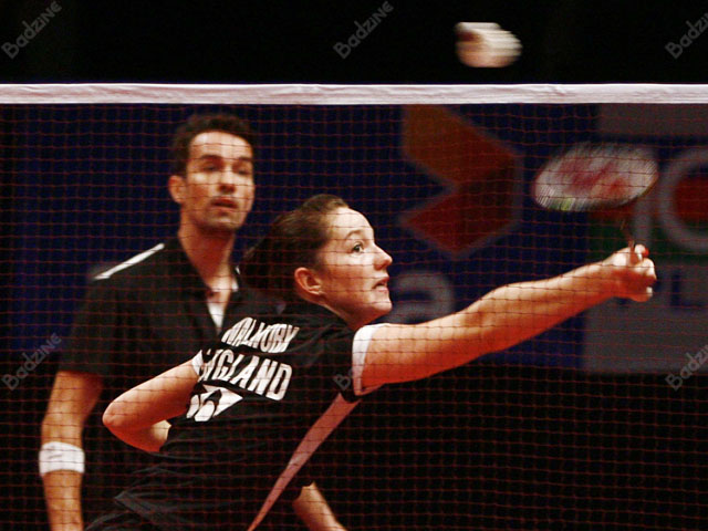 Former World Champion Nathan Robertson, partnering Jenny Wallwork (photo), gave the breathtaking tight performance in the second game before they lost to Danny Bawa Chrisnanta / Vanessa Neo 13-21 29-30. World’s number 12 of Russia Ivan Sozonov/Vladimir Ivanov failed to level up the tie after they lost to Liu Yi/ Terry Yeo so that Team Europe lost to Singapore 1-3.