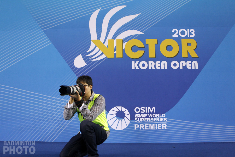 The stadium where the Korea Open is held is a bit far from the hotel – 30 minutes by bus – but it is just the perfect size for a Superseries event. However, the stadium’s design leaves the media seating way up in the stands, quite far from the courts. I was lucky enough to find a better spot in order to be able to rush quickly to the courts in case of photo emergencies.