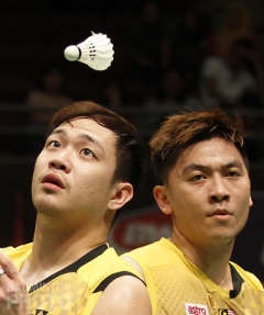 However, Koo Kien Keat / Tan Boon Heong (pictured below) who were up first for Malaysia, bowed down before Chinese Taipei’s Macau Open champions, Lee Sheng Mu / Tsai Chia Hsin (pictured above), levelling the head-to-head record between the two pairs. Koo, startled and slightly choked with sobs post-match said, “I don’t know, I didn’t think that our strong points would be that bad today. We used to be strong at the first three shots in our games, but today it turned out to be our weakness. The opponent was very strong at attacking and at the net. Our plans didn’t work and our game was completely shut down.”