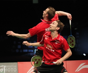 With the tie now tilting 2-0 towards the Chinese team, centre stage was taken by the men’s doubles match-up between the 2012 Olympic gold and silver medallists Cai Yun / Fu Haifeng and Mathias Boe / Carsten Mogensen (pictured) respectively. It proved to be the most exciting match of the night, as both pairs showcased their full arrays of attacking prowess and supporters from both side certainly enjoyed the match that was on display.