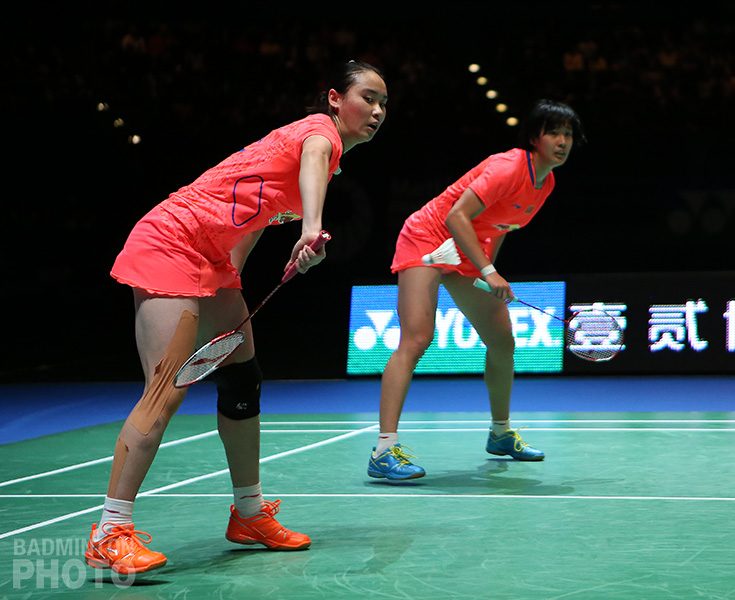 Top-seeded, Wang Xiaoli and Yu Yang (pictured right) have yet to lose even a game in this tournament. Even if they came close to sustaining such a blemish to their record in their second round match against two-time World Junior Champions Lee So Hee / Shin Seung Chan, they finished confidently and decisively. They look strong indeed to defend their title.