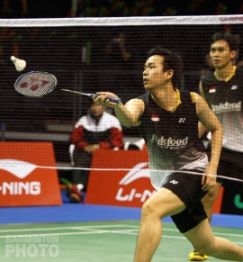 Next up was Tommy Sugiarto (pictured), who pulled a wonderful stunt against the Thai defending champion Boonsak Ponsana to win his first ever Super Series title. Despite losing narrowly in the first game, he earned his heartfelt victory by turning the match to his advantage and eventually secured the title 20-22, 21-5, 21-17.