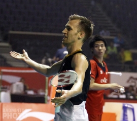 Marc Zwiebler charged to the quarter-finals of the Li-Ning Singapore Open 2013 after creating one of the biggest upsets in the tournament. The Indonesia Open finalist fought his way through the match against first seed Du Pengyu from China and clinched the heartfelt victory 21-18, 12-21, 21-19.