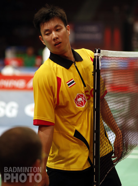 Sugiarto lost an exciting three-game match to Thai youngster Thammasin Sitthikom (pictured right), 16-21, 21-19, 21-17. Sugiarto trailed almost the entire third game before tying the match at 17-all, but Sittikom beat back the challenge from the Indonesian veteran, taking the next four points and the match. Sitthikom proved his victory over Sugiarto was no fluke when he advanced to the 3rd round in the last match of the night by defeating Russia’s Vladmir Malkov, 21-8, 21-13.