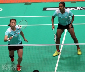 China had a mixed day as their promising young women’s doubles pair of Du Peng / Xiong Mengjing lost out in three to third-seeded Shinta Mulia Sari / Lei Yao (pictured right) of Singapore.